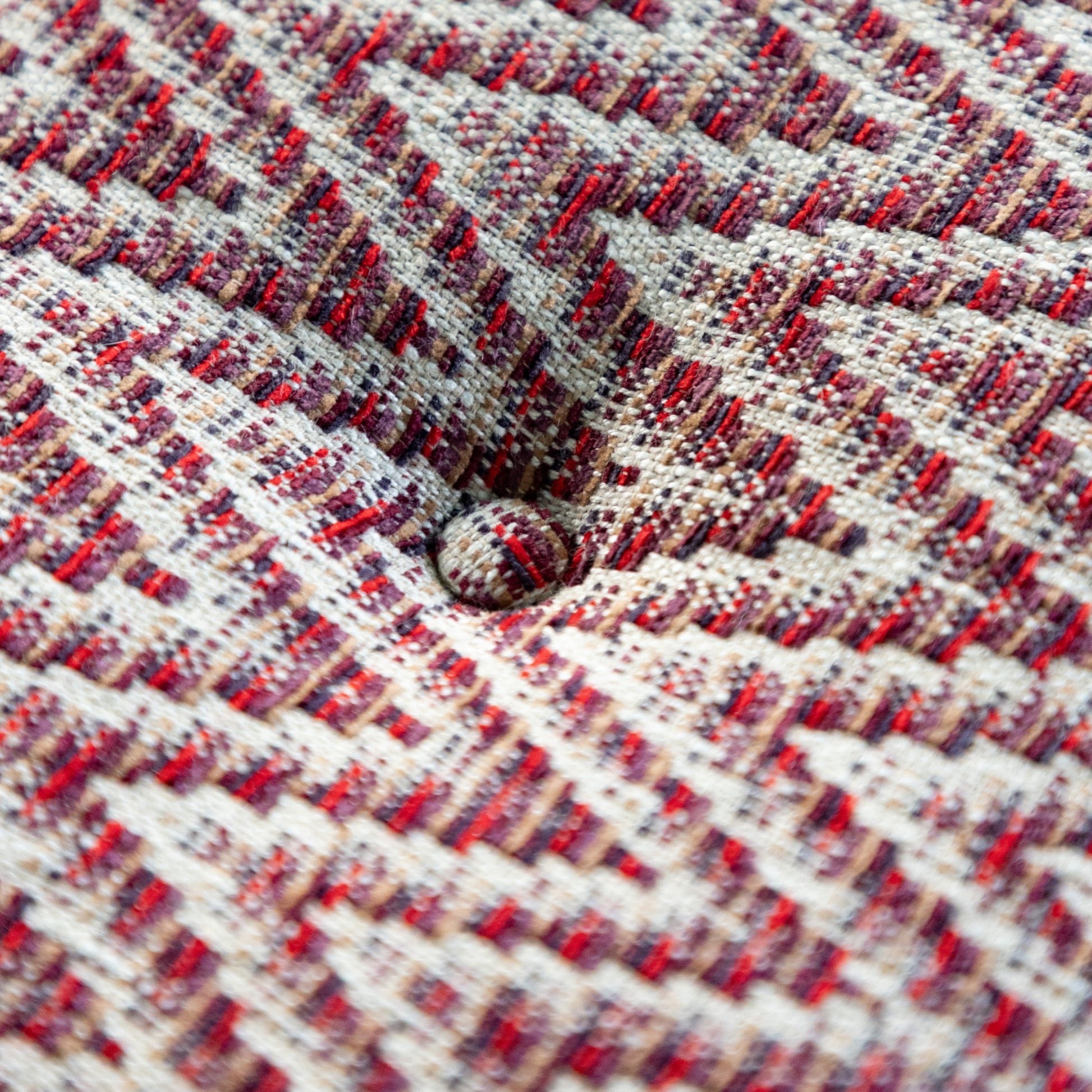 The Nox features a circular motif frieze and beautifully crafted bun feet. Its two-fabric design pairs a deep-buttoned upholstered top with a contrasting fabric base, allowing for endless combinations of colour, pattern, and texture to suit your personal style.